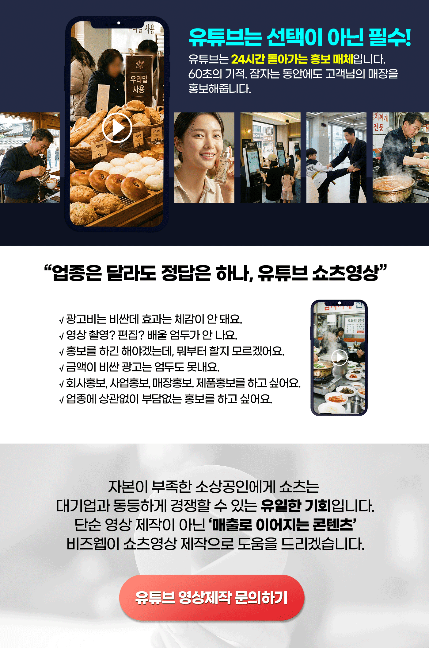 이제 비즈웹의 유튜브 영상제작 서비스를 받아보세요.